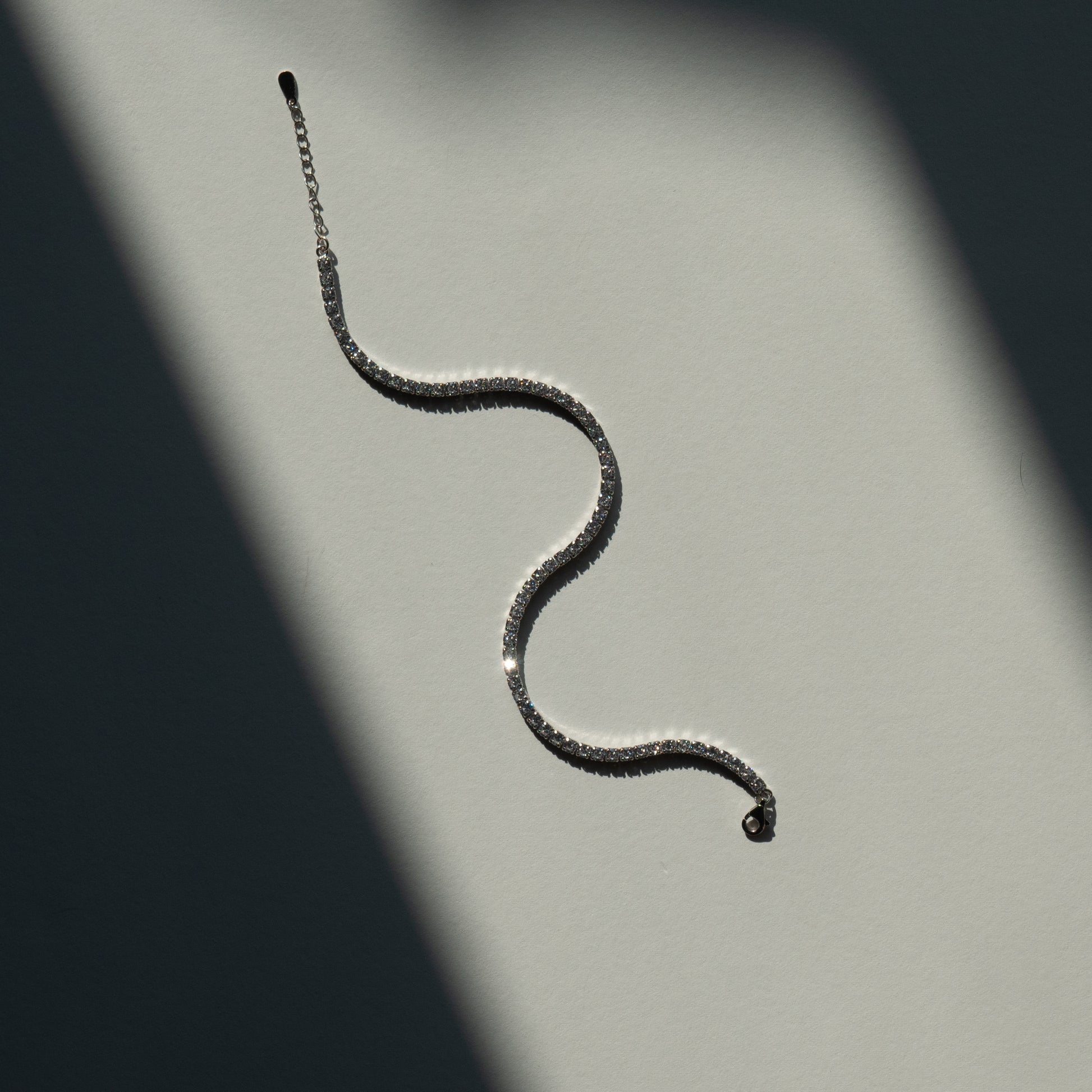 Adorn your ankles with a little sparkle and shine. The Blade tennis bracelet style anklet is a 925 Silver with Rhodium plating and pave CZ stones. Blade is 9" long with a 1.25" extender. Each anklet is about 12-13 grams.