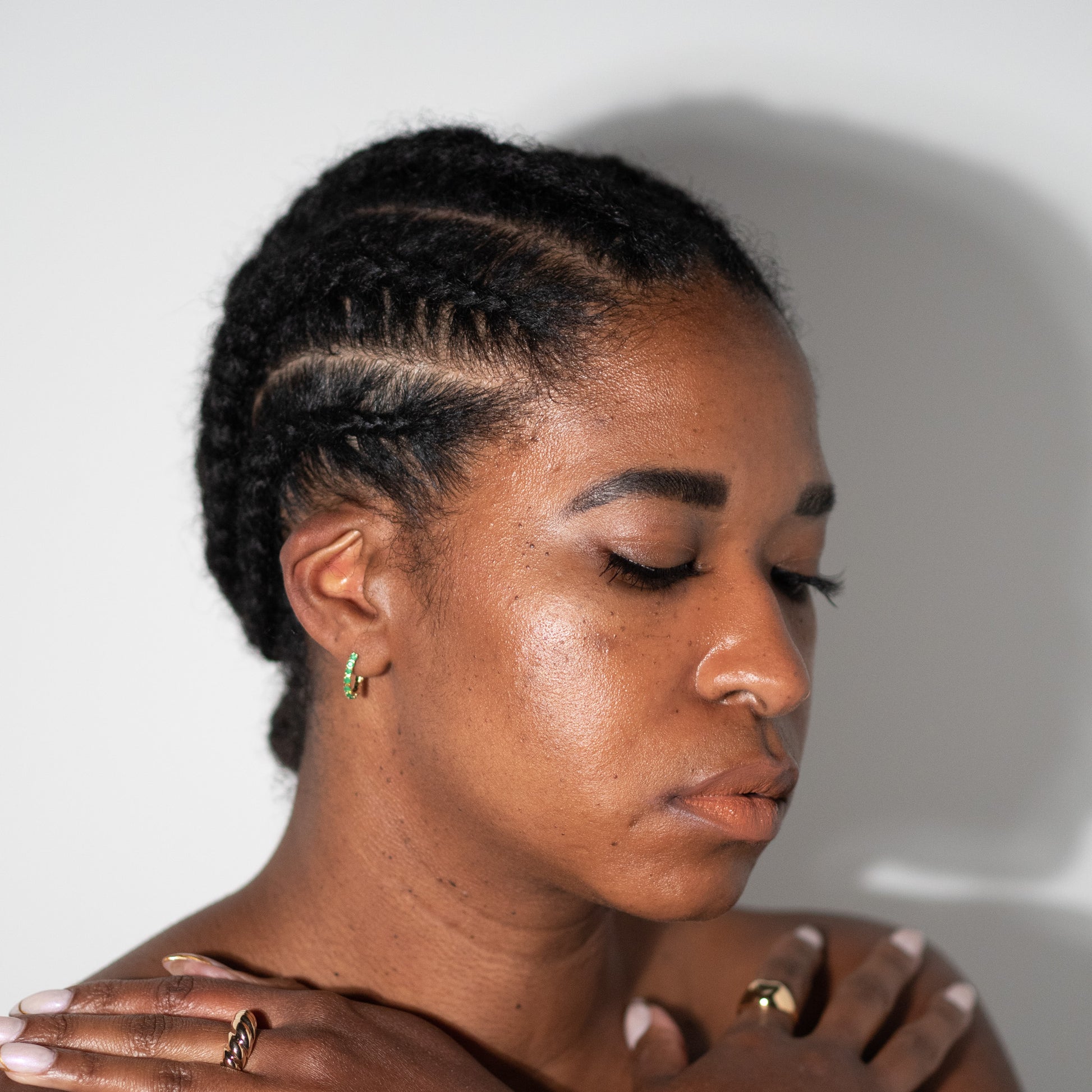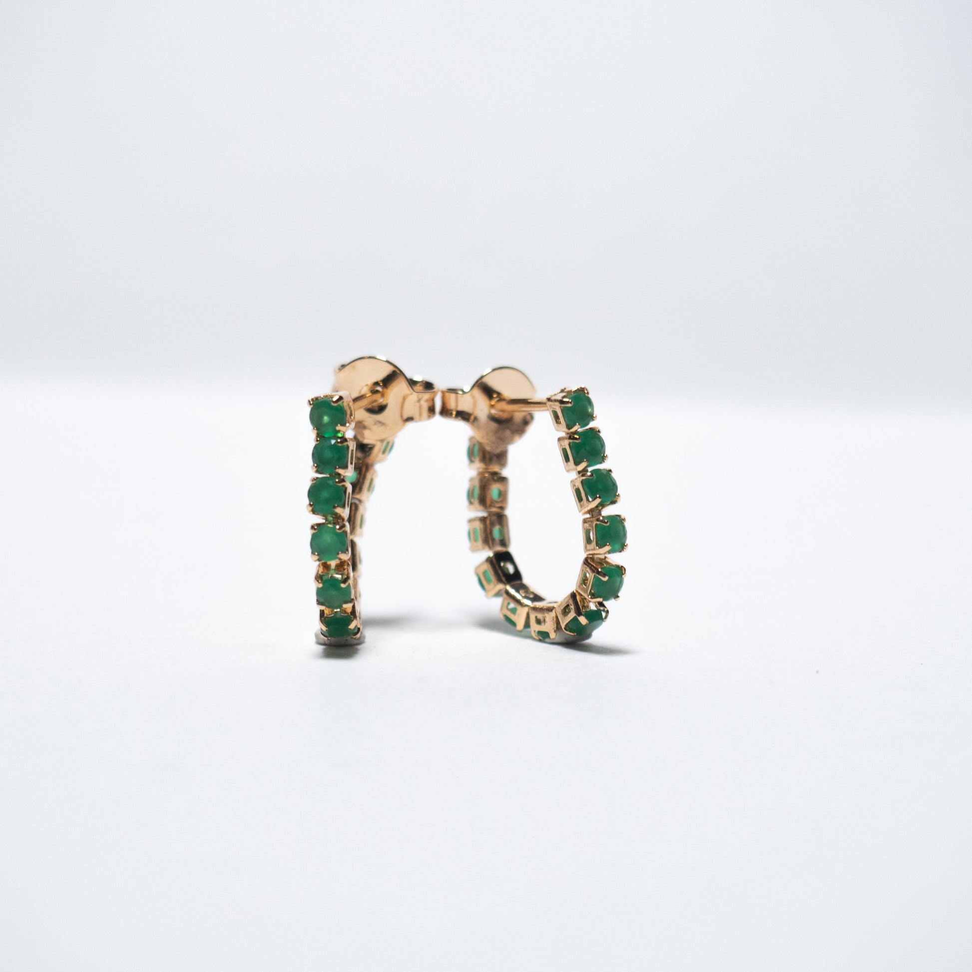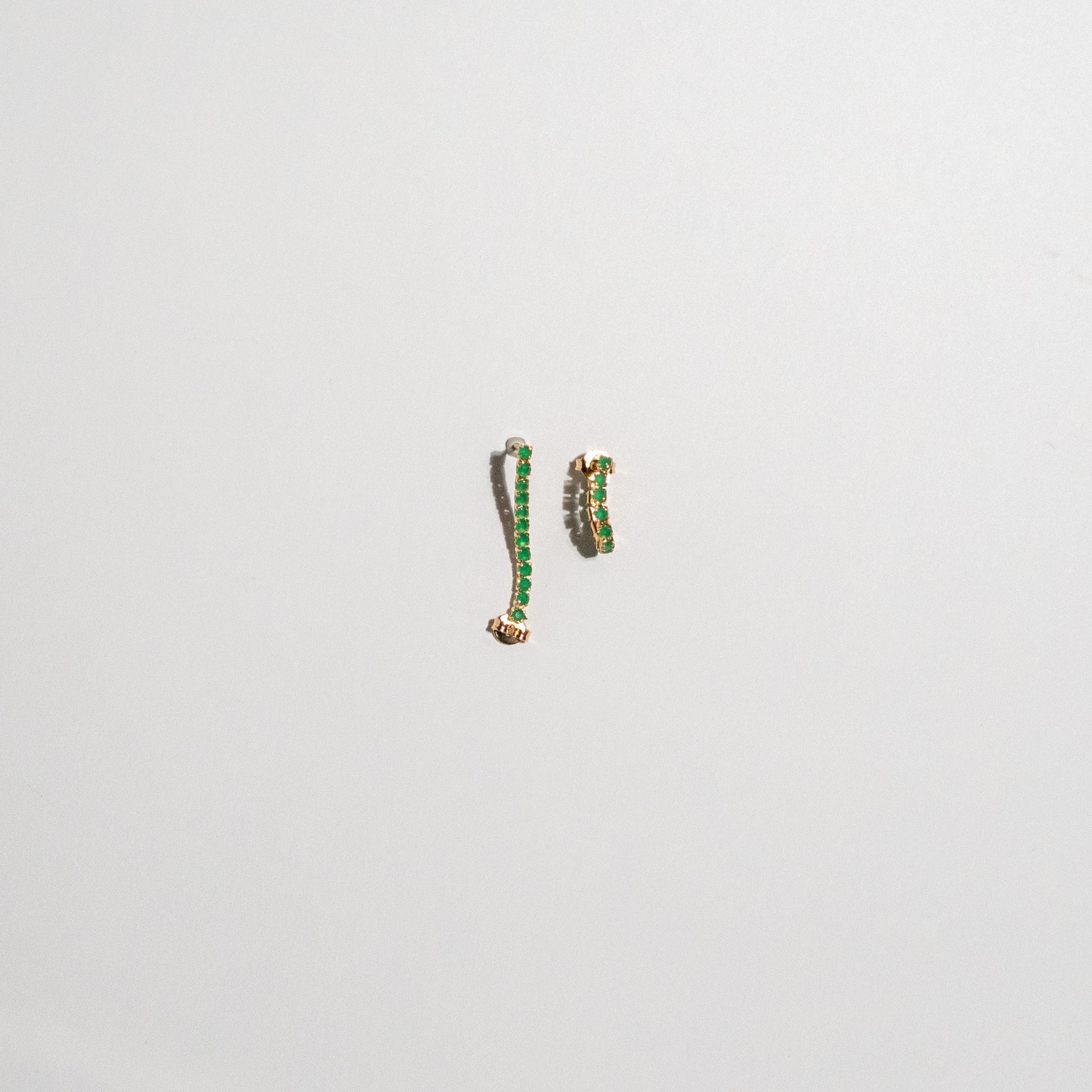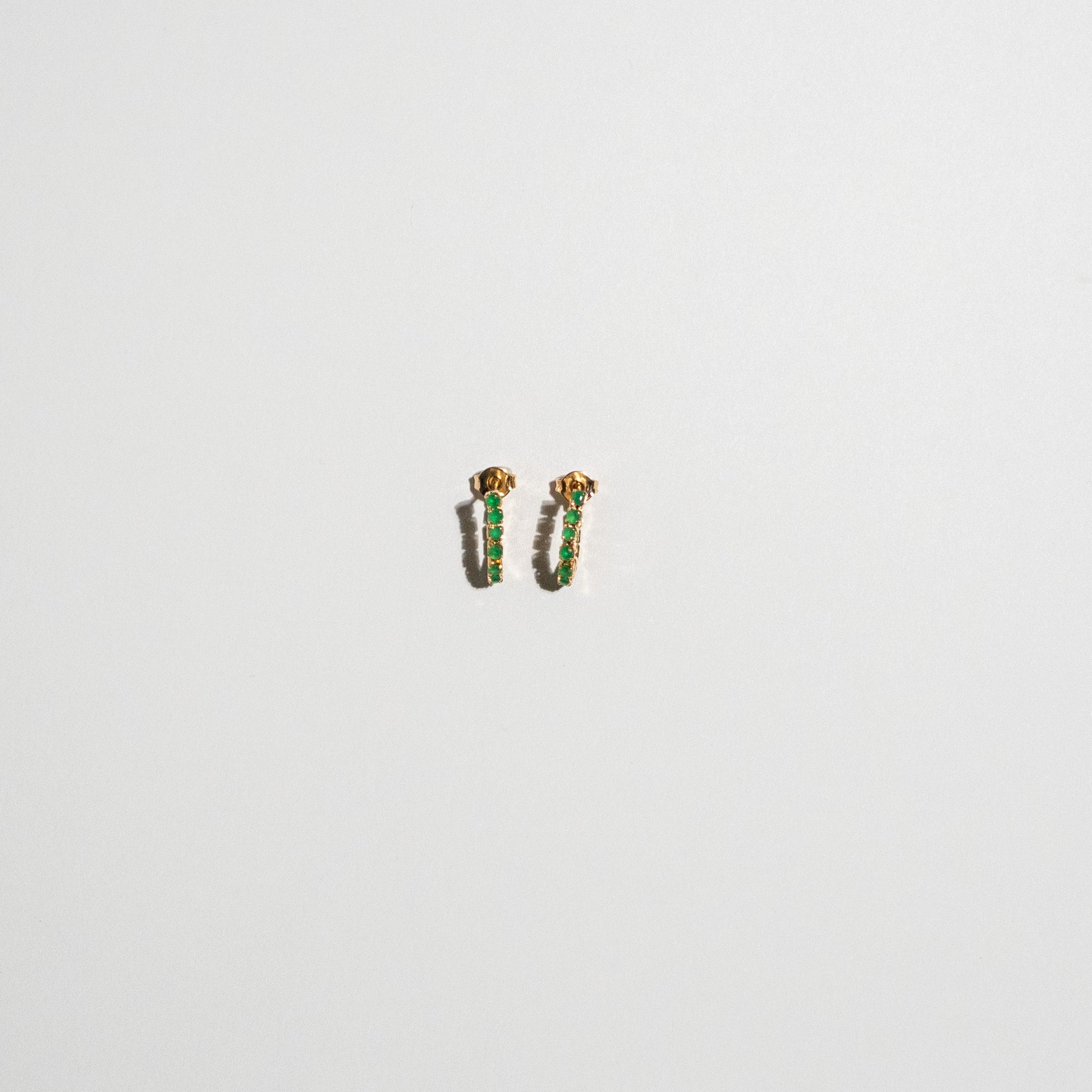 A small pop of color. Maria is a dainty green CZ dangle stud earring with an 18k Gold fill. When extended the earring is a half-inch long.
