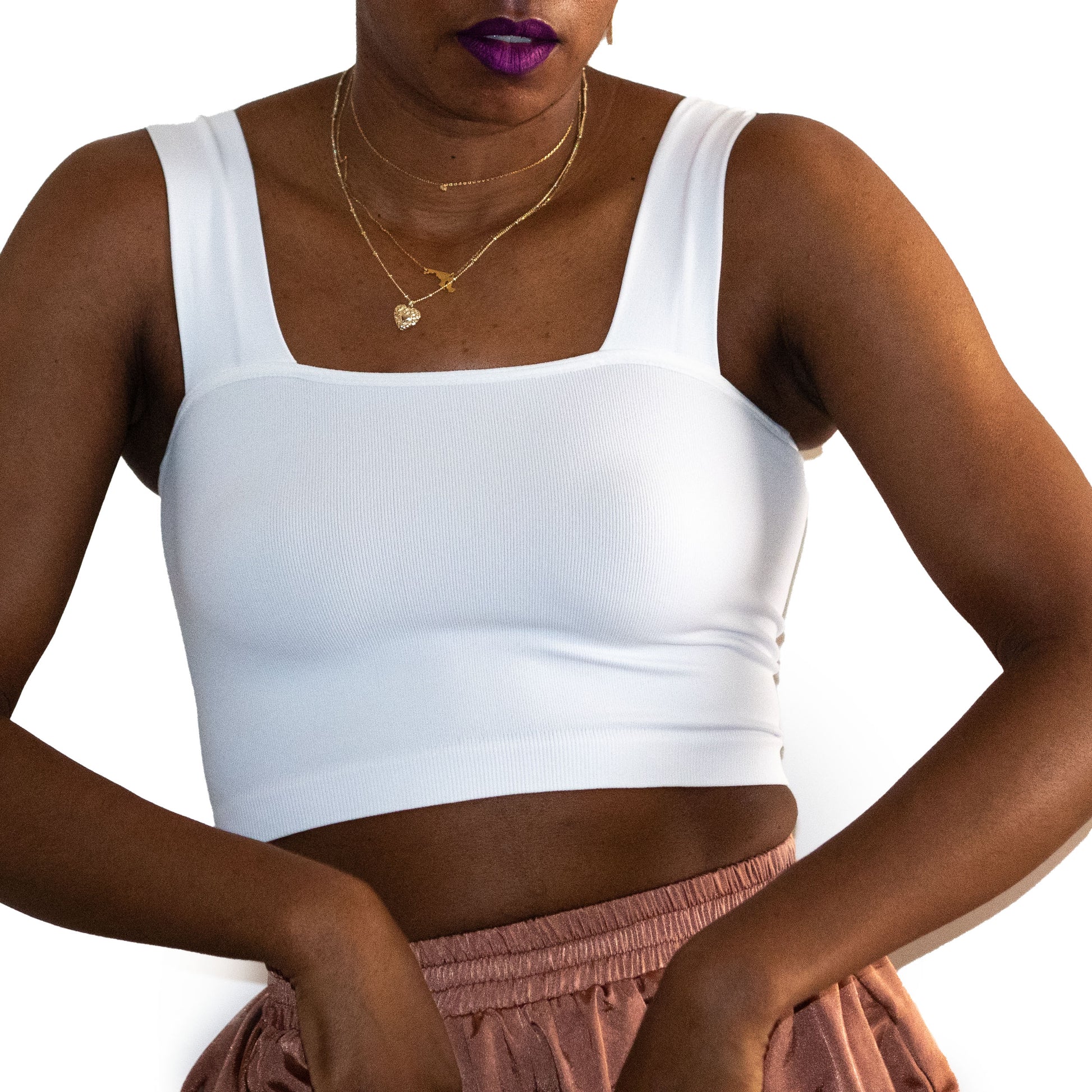 Layer her up or show off in this seamless crop top with a square neckline and wide straps.