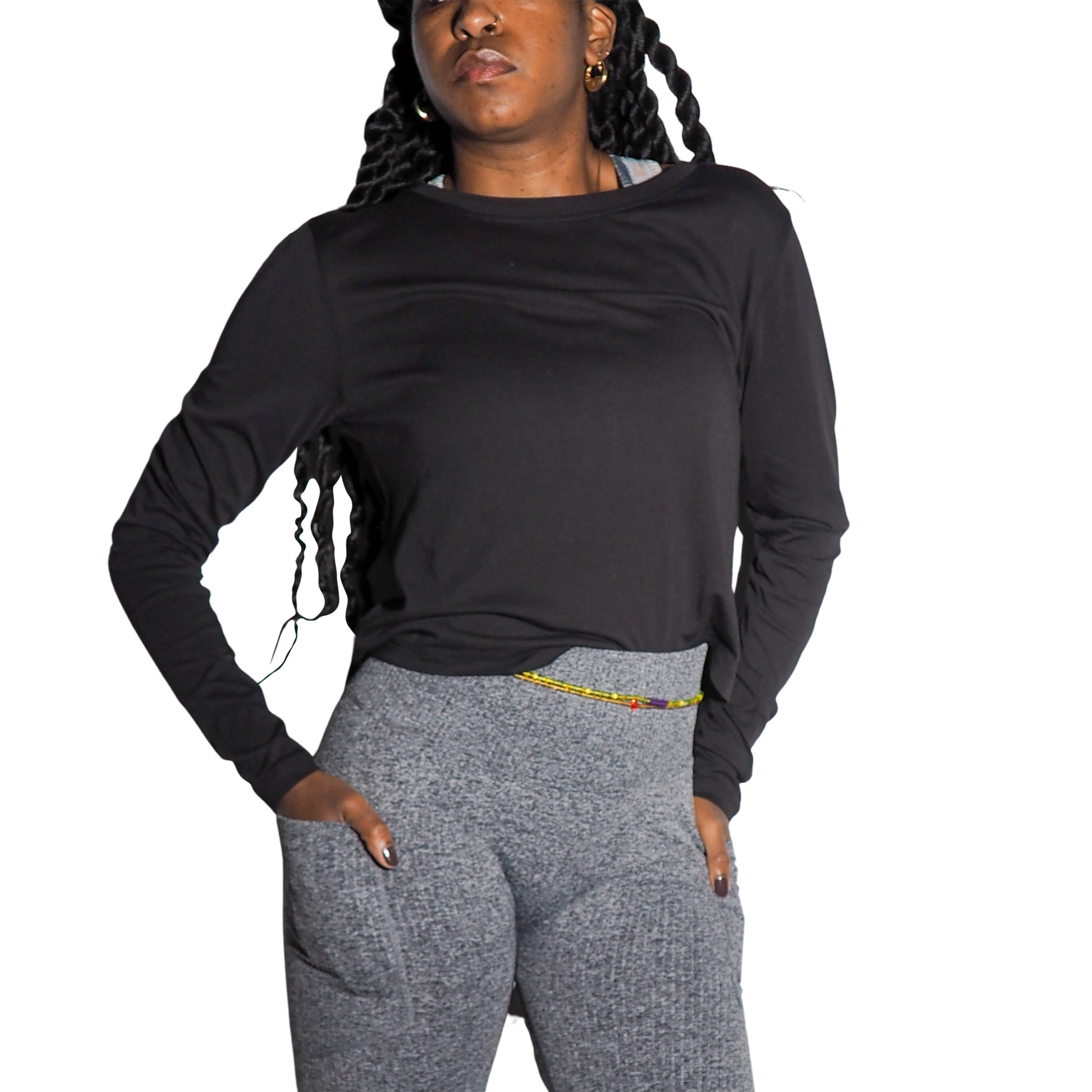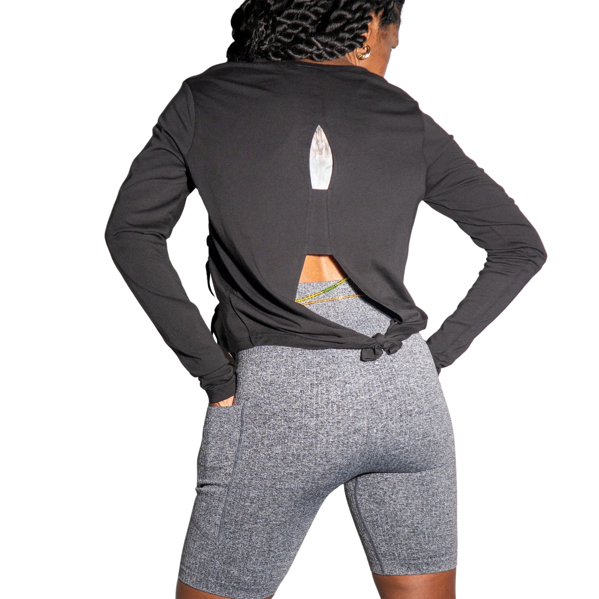It's so soft, you're going to love it! Walter is a long sleeve cotton-modal shirt with cut-out and tie detailing on the back. It's perfect for lounging and workout.