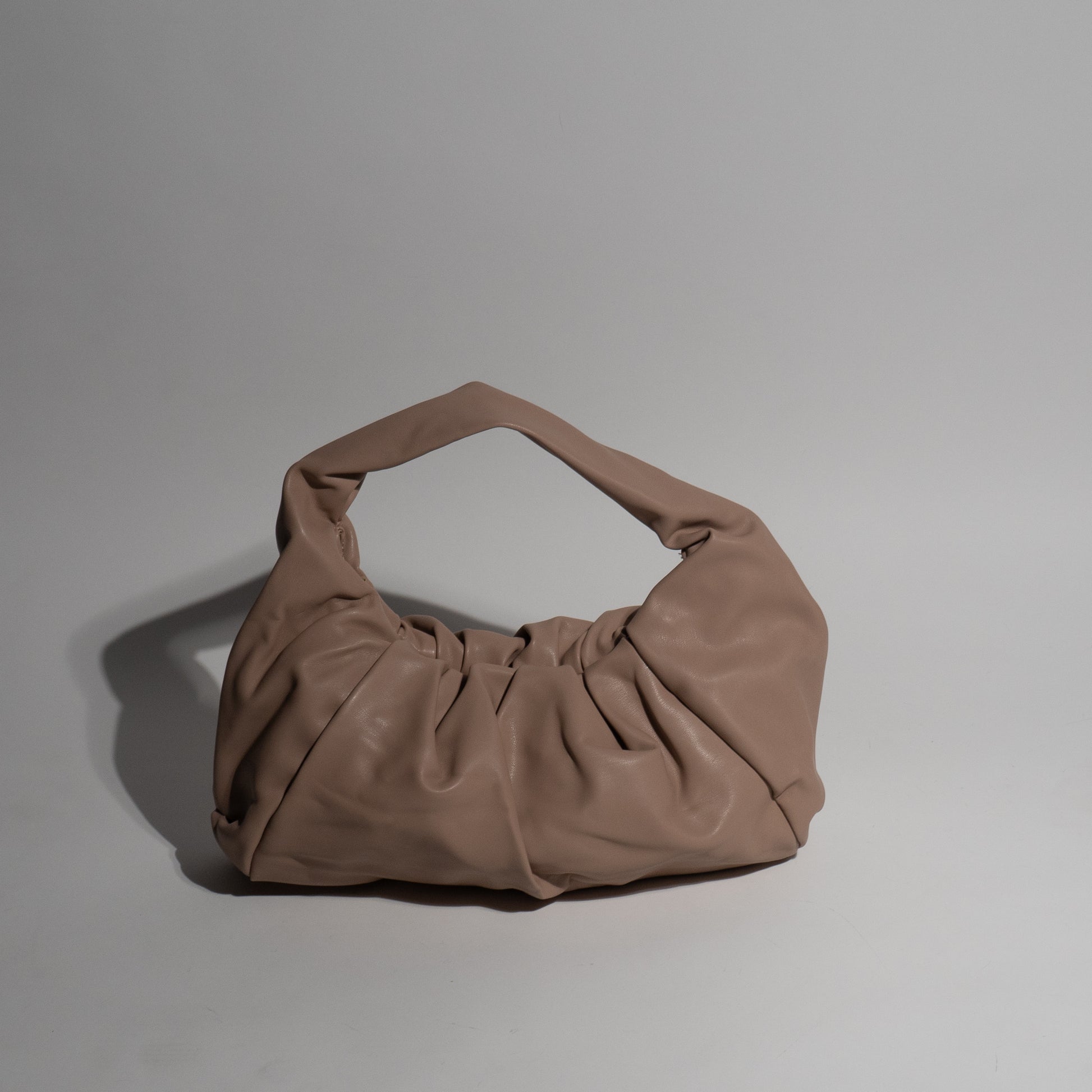 Keep your head in the clouds and your feet on the ground. Woody is a gathered vegan leather clutch bag with a soft ruched detail.